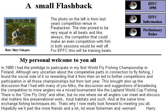 As additional arrangements during the European Fly-Fishing Championship, there is also the Lapland World Cup Fishing